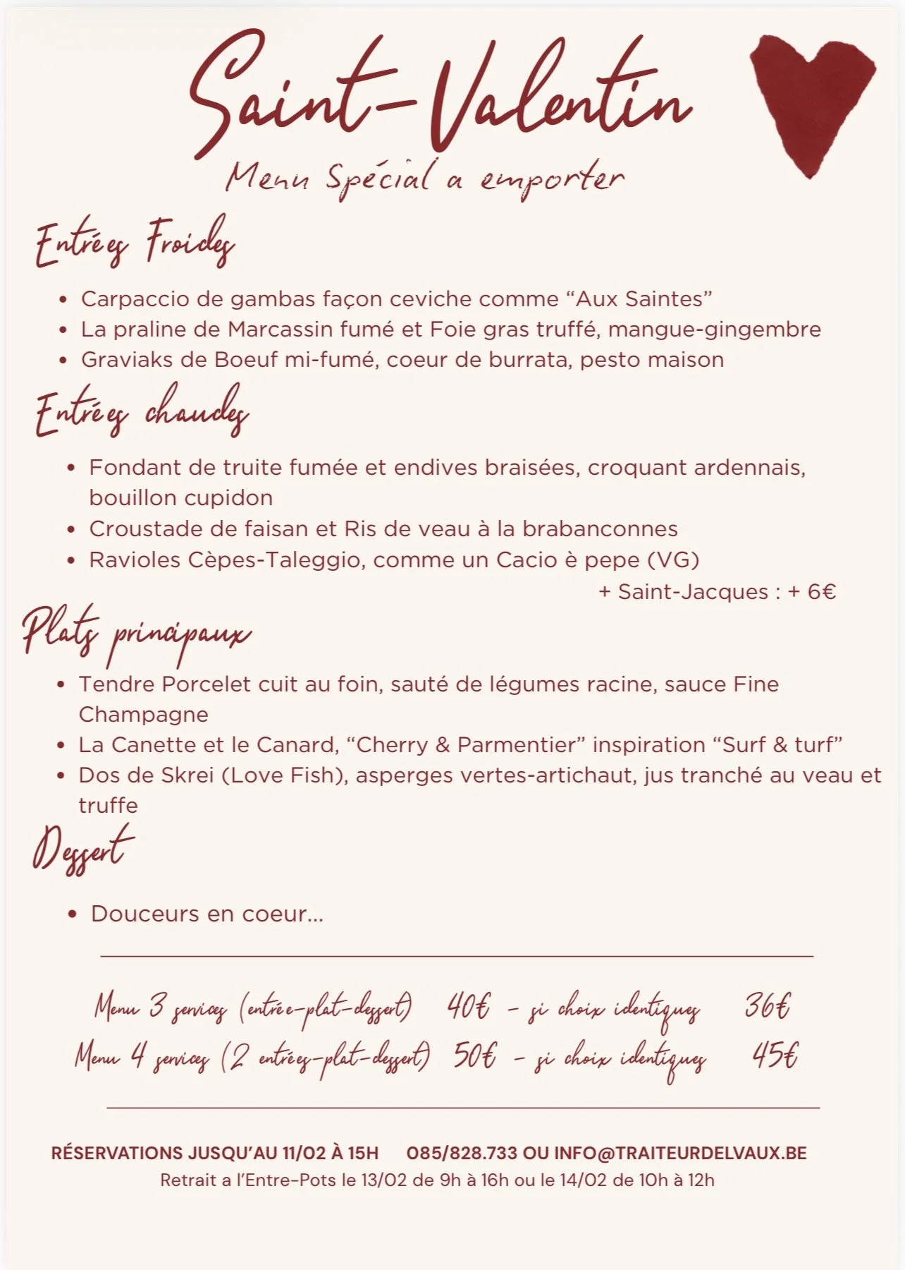 Menu a emporter Saint-Valentin