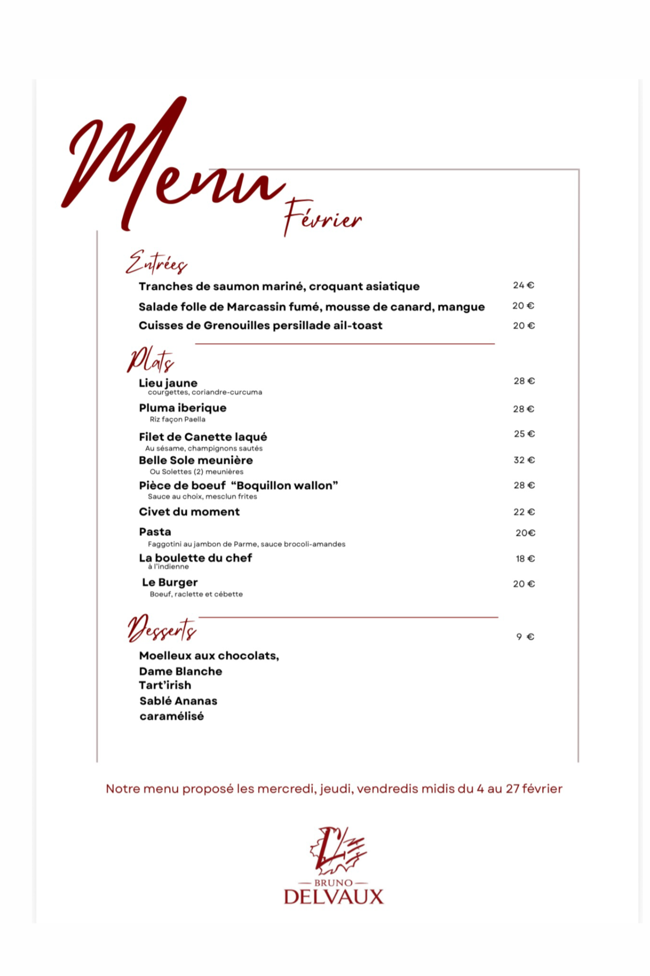 Menu Février