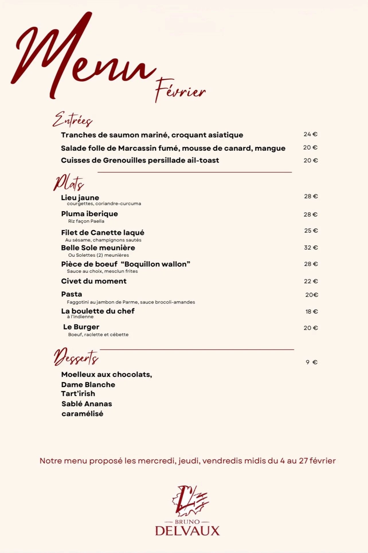 Notre menu Février